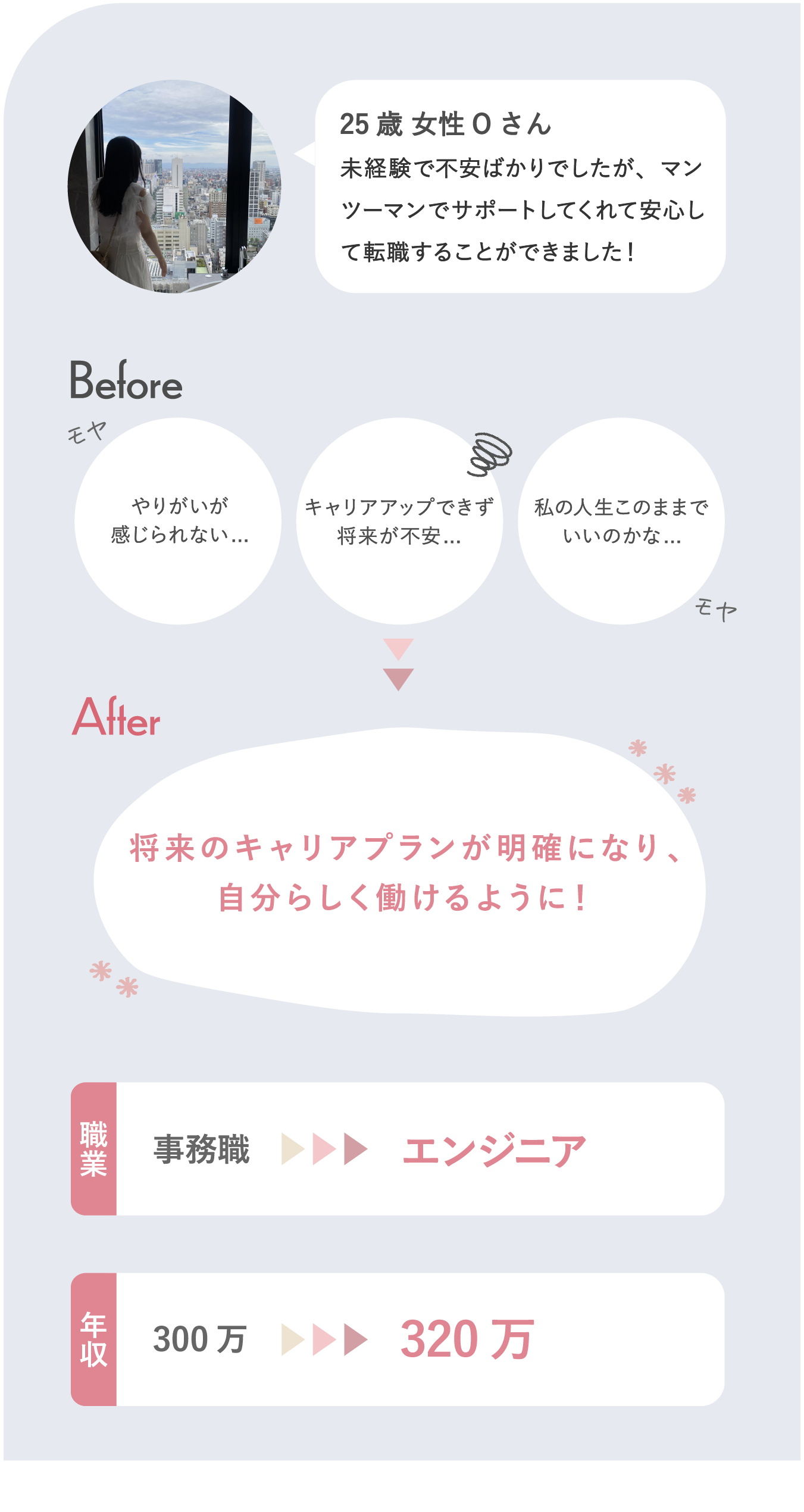 はい。現職でのキャリアアップ、フリーランス、起業など求人にとらわれないキャリア設計を行います。